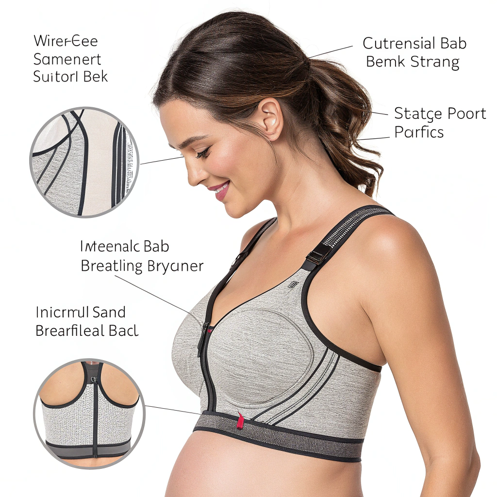Maternity sports bras require different engineering from traditional sports bras. Core design features include: