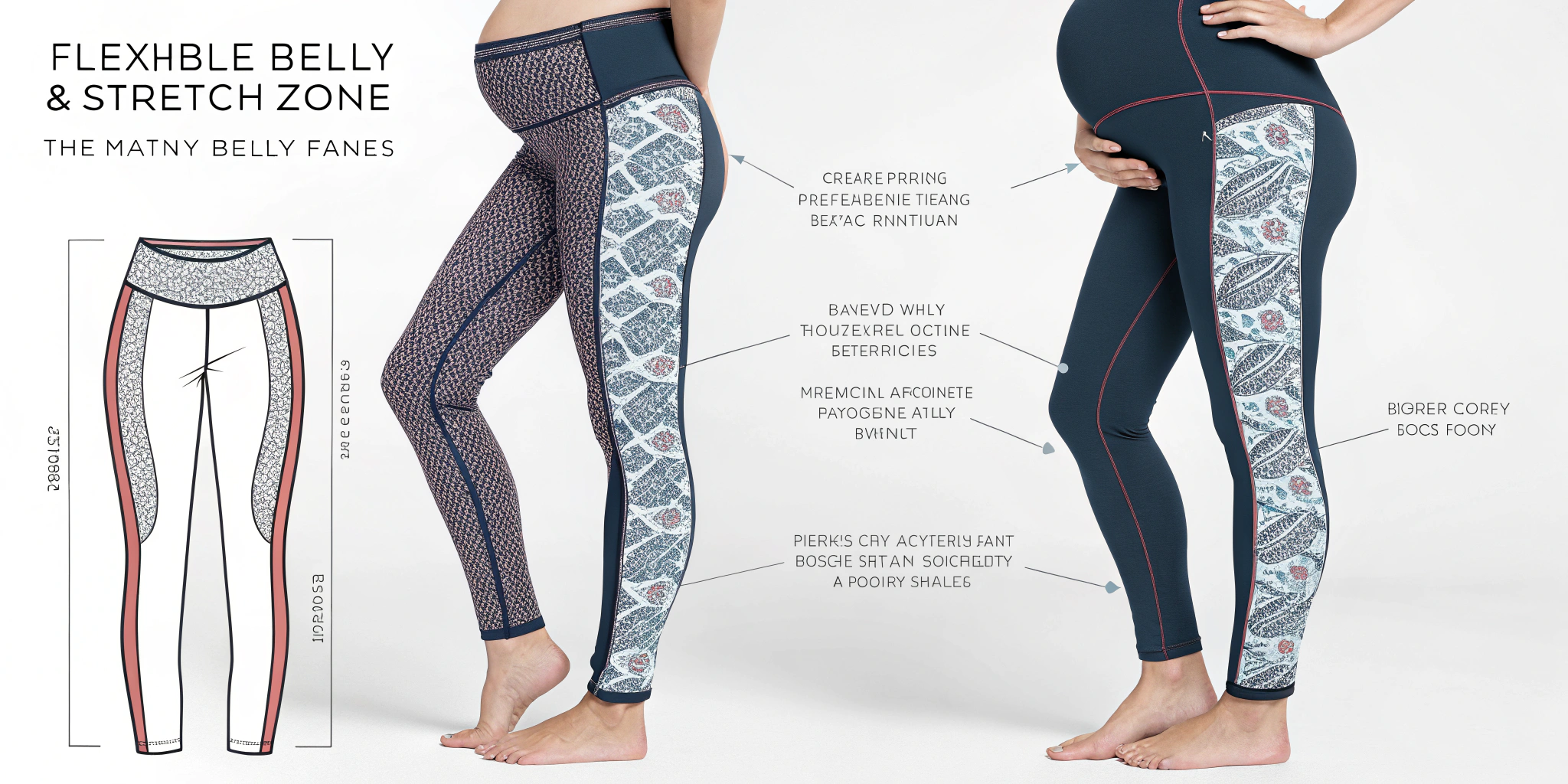 Simply increasing garment measurements does not account for how pregnancy changes body proportions. Belly panels, under-belly waist constructions, and hybrid waistband systems must be engineered to expand without collapsing or rolling. Seam placement becomes critical, as seams crossing high-movement or high-pressure zones can cause irritation.