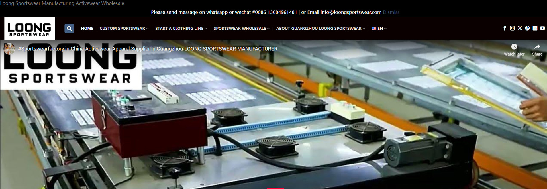 Loong Sportswear Manufacturer is a leading custom gym wear and activewear producer based in Guangzhou, China. With over 15 years of manufacturing experience, the company specializes in OEM and ODM services for global clients, serving fitness brands, e-commerce sellers, and wholesalers across North America, Europe, Australia, and Southeast Asia. Loong Sportswear is known for its high production efficiency, design flexibility, and commitment to quality.