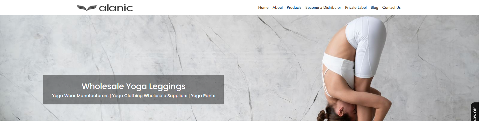 Strengths & Features: Alanic Global provides diverse yoga wear options, supporting custom designs and private label branding. They handle small to large orders and offer global shipping, making them an ideal partner for e-commerce and wholesale businesses.