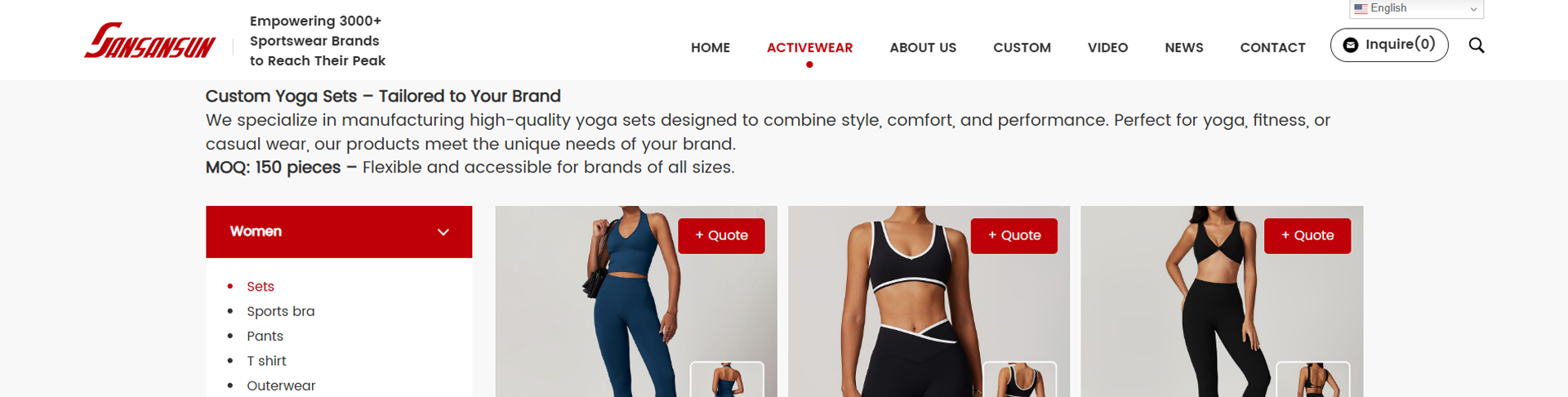 Strengths & Features: Offers a wide range of yoga activewear, supports full customization, and caters to both wholesale and retail clients. Their quality control ensures that every product meets international standards, and they provide design support to match brand identity.