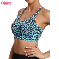 Custom Recycled Polyester Sprots Bra High Impact Sports Bras for Women Leopard Running Bra Workout Top