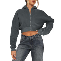 Custom Women's Cropped Hoodie Manufacturer Short Sweat Jacket with Hood Zip Up Hooded Jacket Hoodie Zip Autumn Sweatshirt China OEM Supplier