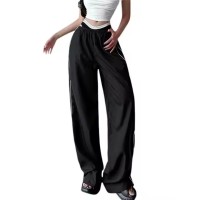 Custom Women's Sports Pants Manufacturer | Low Wide Leg Parachute Pants With Side Stripes