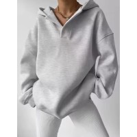 Custom Women's Oversized V-neck Hoodie Manufacturer High Quality Casual Drop Shoulder Pullover Hoodie