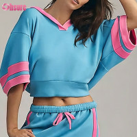 Looking for a premium OEM activewear manufacturer? Our Custom Women's Daily Practice V-Neck Half-Sleeve Hooded Sweatshirt features a unique color-block design and breathable fabric. We offer high-quality private label services, low MOQ, and professional garment manufacturing for global fitness brands. Get a quote today!